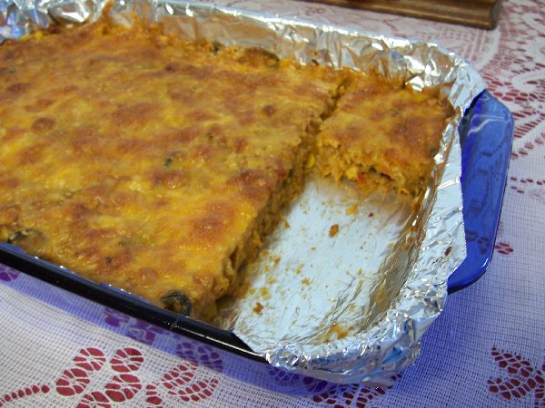 I saw this recipe on Averie Cooks and decided to give it a try with a few minor changes. I'm really glad that I did. I was pleased with the flavor and with the ease of making it. The recipe suggested lining the baking dish with foil, which I did, and that made the clean up really easy also. So.....what's not to like? The recipe has a rice base and no tortillas. Taco's with no tortillas??? Well, the taco flavoring is so good I didn't even miss the tortillas! If you like tacos, have a family to feed and need something easy to throw together, you really ought to give this a try!